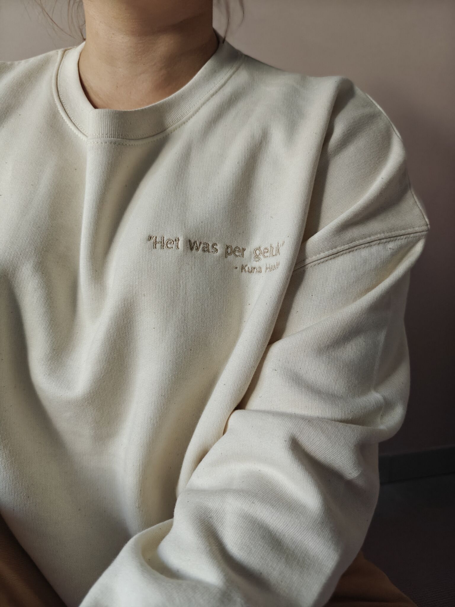 sweater " het was per geluk"